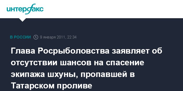 Глава Росрыболовства заявляет об отсутствии шансов на спасение экипажа шхуны, пропавшей в Татарском проливе