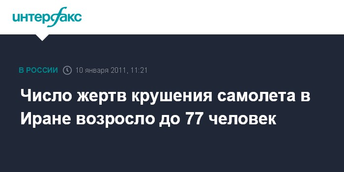 Тегеран. 10 января. INTERFAX.RU - Крушение пассажирского самолета на северо-западе Ирана, по последним данным, привело к гибели минимум 77 человек, еще 26 ранены, сообщает местное агентство ИСНА. Ранее сообщалось о 70 погибших в результате крушения самолета "Боинг-727", принадлежащего компании "Иран Эйр". По данным местных властей, на борту разбившегося самолета находились 105 человек: 94 пассажира и 11 членов экипажа.