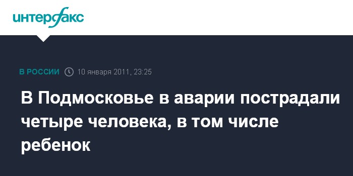 Москва. 10 января. ИНТЕРФАКС - На западе Московской области в результате ДТП тяжелые травмы получили четыре человека, сообщил "Интерфаксу" источник в правоохранительных органах.