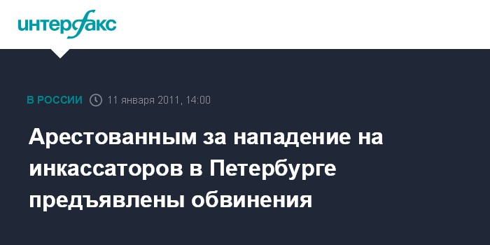 Санкт-Петербург. 11 января. INTERFAX.RU - Следственное управление СК РФ по Петербургу предъявило обвинения арестованным за нападение на инкассаторов 28 декабря, в результате которого погибли три человека.