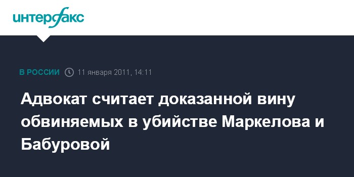 Адвокат считает доказанной вину обвиняемых в убийстве Маркелова и Бабуровой