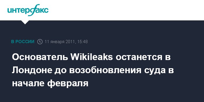 Основатель Wikileaks останется в Лондоне до возобновления суда в начале февраля
