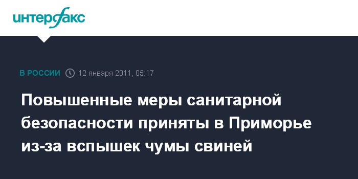 Владивосток. 12 января. ИНТЕРФАКС-ДАЛЬНИЙ ВОСТОК - В Приморском крае действуют усиленные меры санитарной безопасности из-за очередной вспышки африканской чумы свиней в западных регионах страны.