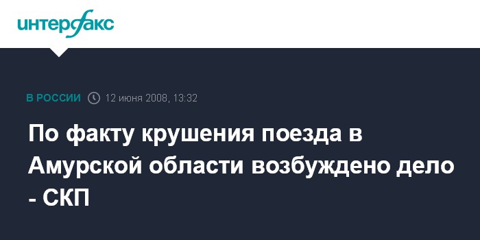 Москва. 12 июня. ИНТЕРФАКС - Дело по факту аварии пассажирского поезда в Амурской области возбуждено по статье "нарушение правил безопасности".