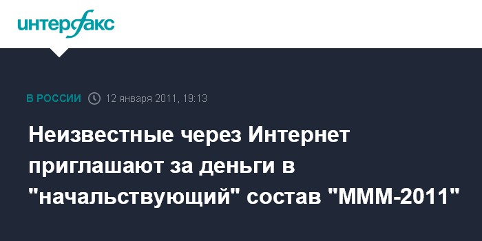 Неизвестные через Интернет приглашают за деньги в "начальствующий" состав "МММ-2011"