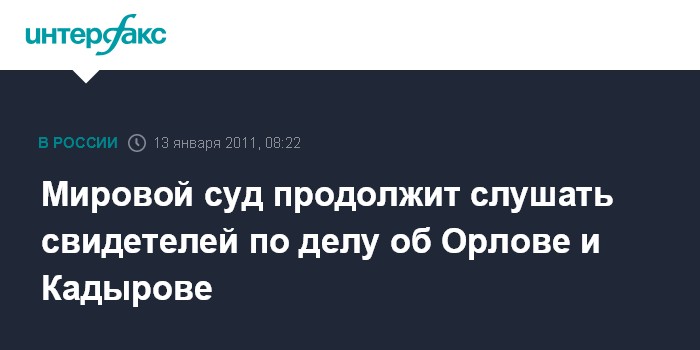 Мировой суд продолжит слушать свидетелей по делу об Орлове и Кадырове