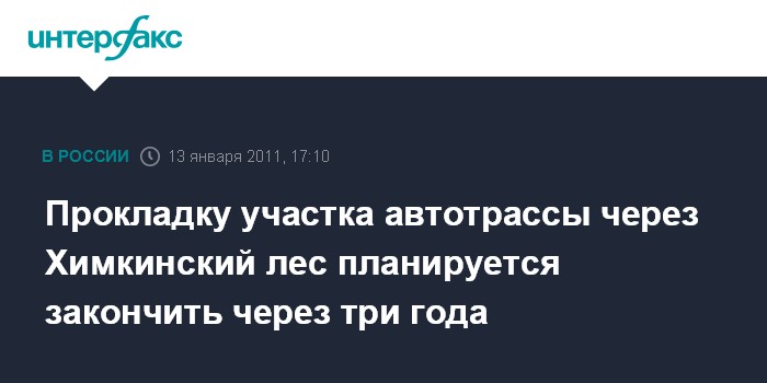 По его словам, вряд ли строительство начнется раньше, чем через месяц, так как не менее двух недель уйдет на формирование рабочей группы, комитета экологического мониторинга при "Автодоре" и не менее двух недель - на соглашение с Северо-западной концессионной компанией.