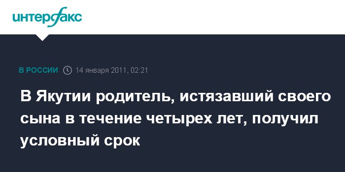 В Якутии родитель, истязавший своего сына в течение четырех лет, получил условный срок