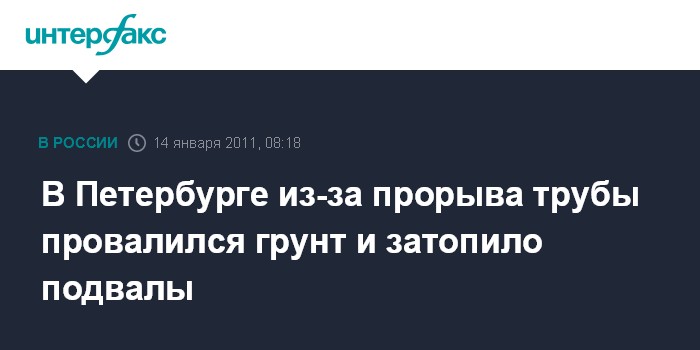 В Петербурге из-за прорыва трубы провалился грунт и затопило подвалы