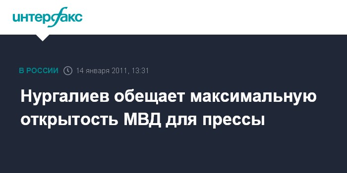 Москва. 14 января. INTERFAX.RU - МВД РФ продолжит работать в режиме максимальной открытости для граждан и СМИ, заявил министр внутренних дел РФ Рашид Нургалиев в пятницу на встрече с журналистами по случаю Дня российской печати.