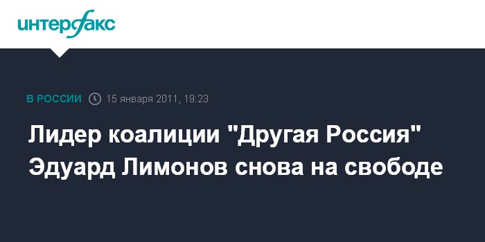 Москва. 15 января. INTERFAX.RU - Лидер коалиции "Другая Россия" Эдуард Лимонов в субботу вечером вышел на свободу из изолятора на Симферопольском бульваре Москвы после 15 суток административного ареста. "Лимонова заранее увезли из изолятора в ОВД района "Ломоносовский". Его освободили из ОВД, он уже вернулся домой", - сказал "Интерфаксу" представитель "Другой России" Александр Аверин.