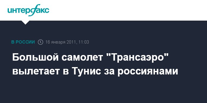 Большой самолет "Трансаэро" вылетает в Тунис за россиянами