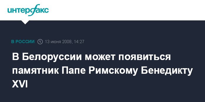 Минск. 13 июня. ИНТЕРФАКС-ЗАПАД - Белорусские католики планируют к приезду в Белоруссию одного из самых влиятельных кардиналов Ватикана Торчизио Бертоне открыть памятник Папе Римскому Бенедикту XVI, сообщили "Интерфаксу" в пятницу в минском епархиальном управлении Римско-католической церкви.