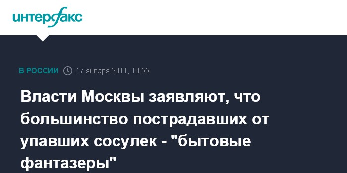 Власти Москвы заявляют, что большинство пострадавших от упавших сосулек - "бытовые фантазеры"