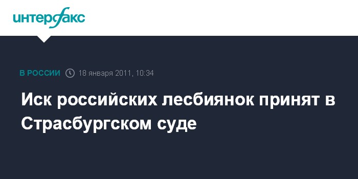 "Соответствующее письмо из Страсбурга поступило в адрес адвокатов пары. Жалоба была направлена в Европейский Суд в июле. В ней говорится, что российские власти нарушили в отношении заявительниц статью 12 Европейской конвенции, гарантирующую право на брак, а также статьи 8 (право на уважение семейной жизни) совместно со статьей 14 (право не подвергаться дискриминации)",- сообщил "Интерфаксу" организатор московских гей-парадов Николай Алексеев.