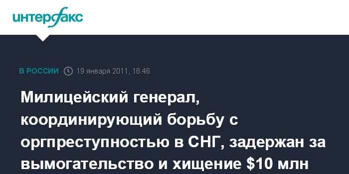 Милицейский генерал, координирующий борьбу с оргпреступностью в СНГ, задержан за вымогательство и хищение $10 млн
