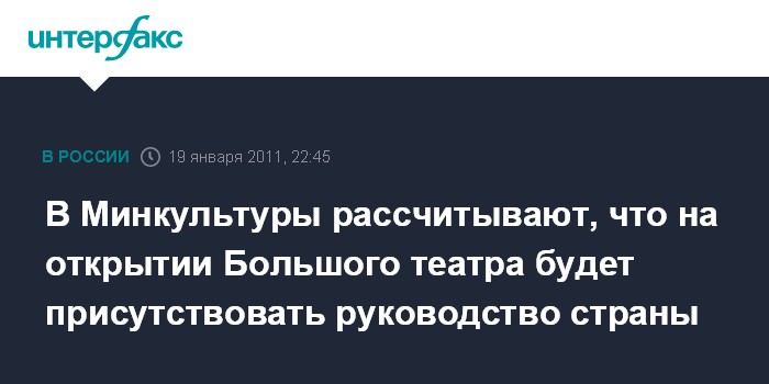 В Минкультуры рассчитывают, что на открытии Большого театра будет присутствовать руководство страны