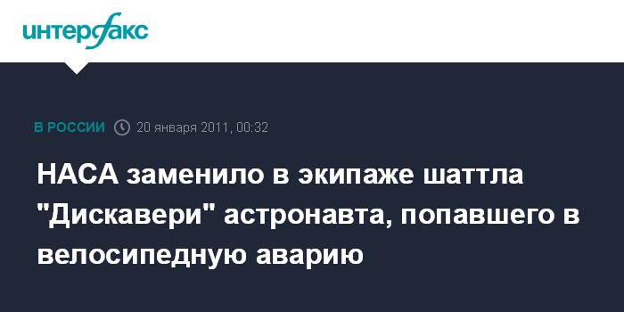 НАСА заменило в экипаже шаттла "Дискавери" астронавта, попавшего в велосипедную аварию