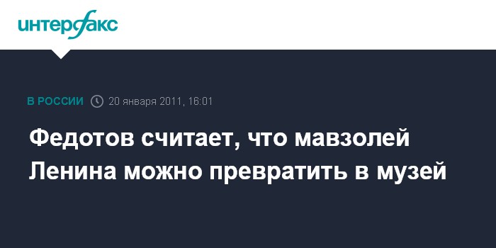 Москва. 20 января. INTERFAX.RU - Глава президентского Совета по правам человека Михаил Федотов предлагает рассмотреть вопрос о придании мавзолею на Красной площади, где находится тело советского лидера Владимира Ленина, статуса музея.