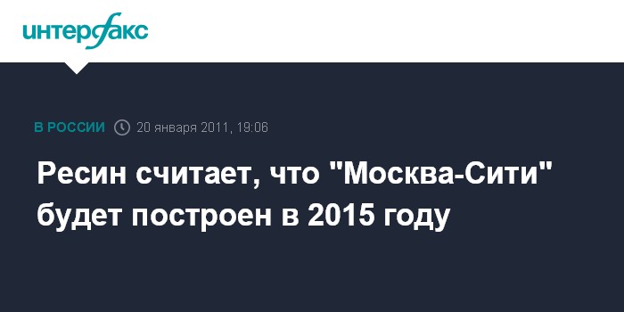 Ресин считает, что "Москва-Сити" будет построен в 2015 году