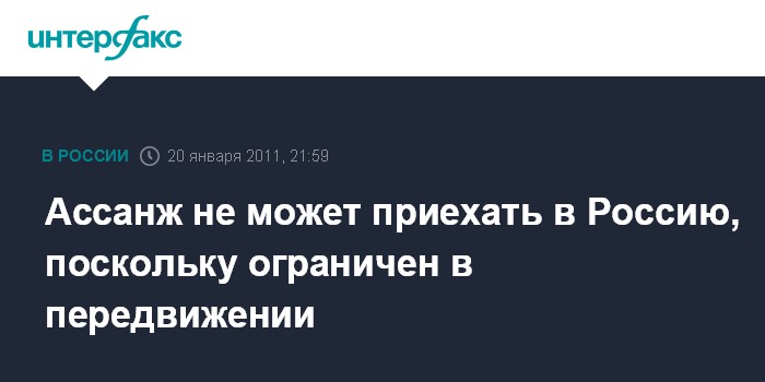 Ассанж не может приехать в Россию, поскольку ограничен в передвижении