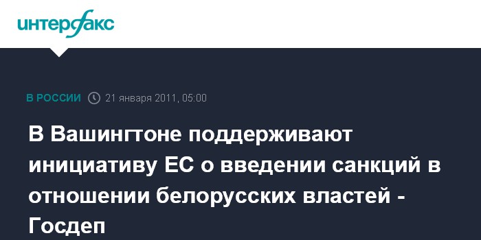 Москва. 21 января. ИНТЕРФАКС - США поддерживают резолюцию Европарламента немедленно ввести санкции в отношении руководства Белоруссии, заявил журналистам пресс-секретарь Госдепа США Филипп Кроули.
