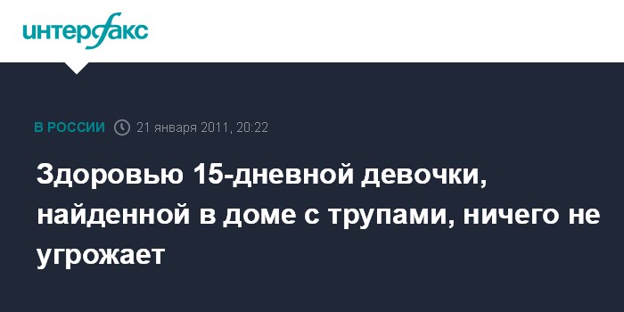 Здоровью 15-дневной девочки, найденной в доме с трупами, ничего не угрожает