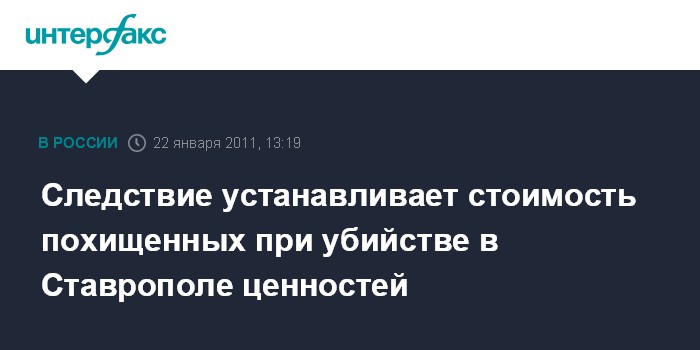 Ставрополь. 22 января. INTERFAX.RU - Из дома в Ставрополе, где во второй половине дня в пятницу были обнаружены тела восьми человек, украдены ювелирные изделия. "По предварительным данным, из дома похищены ювелирные изделия из драгоценных металлов, стоимость которых устанавливается", - сообщила агентству "Интерфакс-Юг" старший помощник прокурора края по взаимодействию со СМИ Людмила Дулькина.