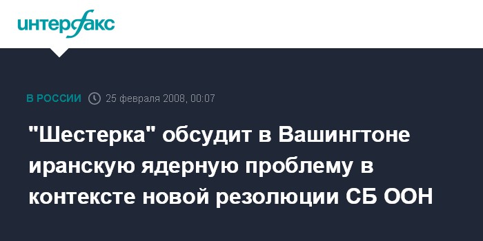 Москва. 25 февраля. INTERFAX.RU - Встреча "шестерки" посредников в урегулировании иранской ядерной проблемы состоится 25 февраля в Вашингтоне, сообщает дипломатический источник.