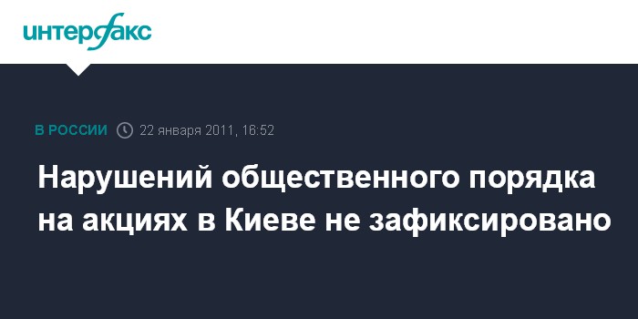 Киев. 22 января. INTERFAX.RU - Мероприятия и акции, посвященные Дню соборности Украины, в субботу в Киеве проходят спокойно, сообщает центр общественных связей ГУ МВД Украины в Киеве. "Сейчас столичной милицией не зафиксировано никаких нарушений общественного порядка. Милиция и дальше, до окончания мероприятий, будет делать все возможное, чтобы праздник прошел должным образом, без правонарушений и недоразумений", - говорится в сообщении.