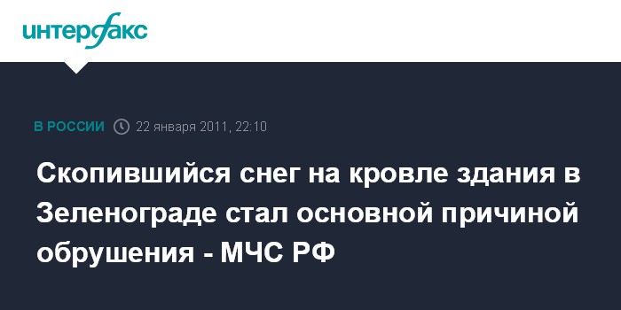 Скопившийся снег на кровле здания в Зеленограде стал основной причиной обрушения - МЧС РФ