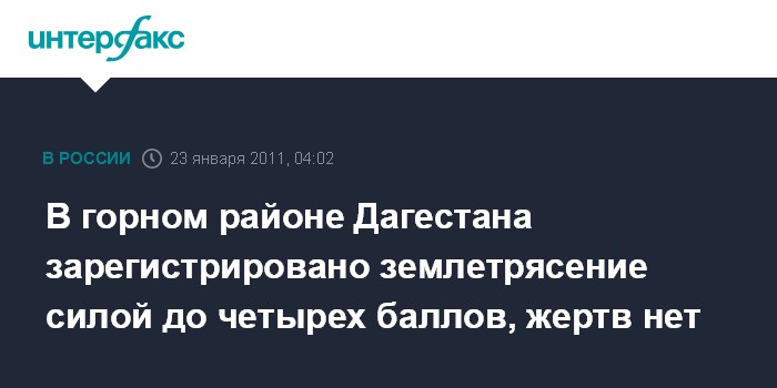Ростов-на-Дону. 23 января. ИНТЕРФАКС-ЮГ - В дагестанском селе Ботлих в субботу произошло землетрясение силой до четырех баллов по шкале Рихтера.