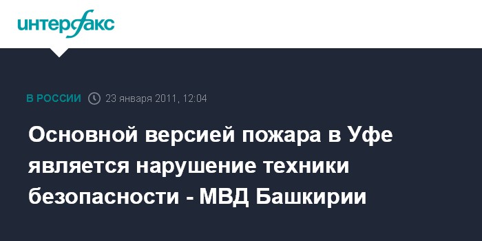 Основной версией пожара в Уфе является нарушение техники безопасности - МВД Башкирии
