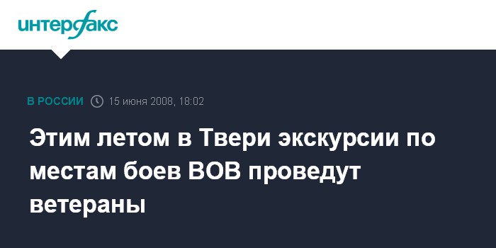 Тверь. 15 июня. ИНТЕРФАКС-ЦЕНТР - Экскурсии по местам сражений Великой Отечественной войны "Тверь - город воинской славы" пройдут в столице Верхневолжья в июне-июле, сообщили "Интерфаксу" в областном совете ветеранов.