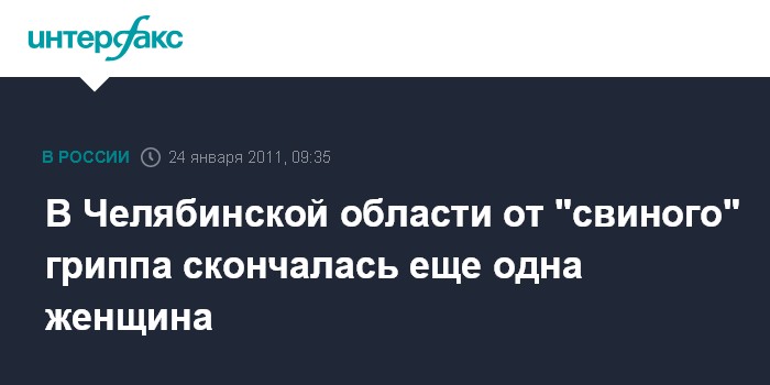 Челябинск. 24 января. INTERFAX.RU - В городе Чебаркуль Челябинской области от "свиного" гриппа скончалась женщина, написал в своем блоге глава города Андрей Орлов.
