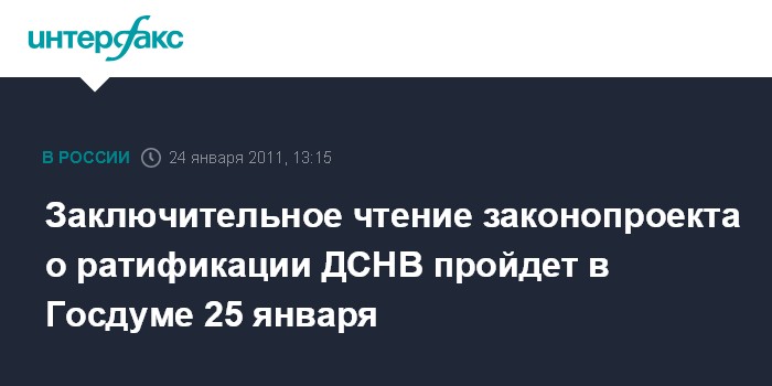 Заключительное чтение законопроекта о ратификации ДСНВ пройдет в Госдуме 25 января