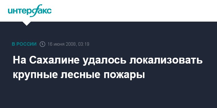 Южно-Сахалинск. 16 июня. ИНТЕРФАКС-ДАЛЬНИЙ ВОСТОК - На Сахалине удалось локализовать три самых крупных лесных пожара общей площадью более 3,7 тыс. га, которые бушуют в Ногликском районе уже почти две недели.