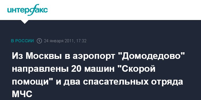Из Москвы в аэропорт "Домодедово" направлены 20 машин "Скорой помощи" и два спасательных отряда МЧС