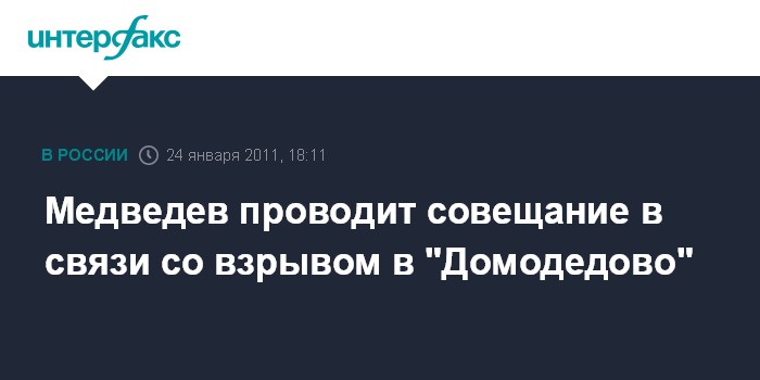 Москва. 24 января. INTERFAX.RU - Президент РФ Дмитрий Медведев проводит экстренное совещание в связи с терактом в московском аэропорту "Домодедово".