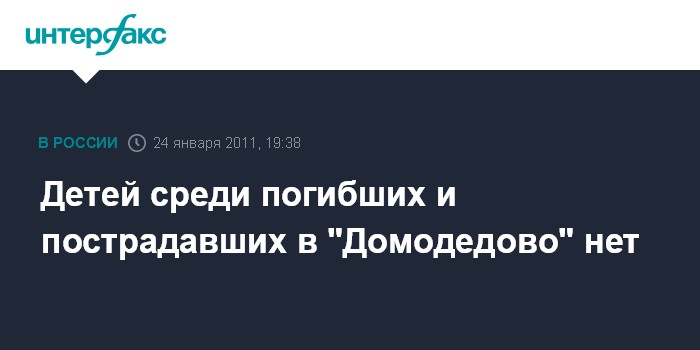 Москва. 24 января. INTERFAX.RU - Среди погибших от взрыва в аэропорту "Домодедово", а также раненых нет ни одного ребенка, сообщил "Интерфаксу" источник в медицинских кругах на условиях анонимности.