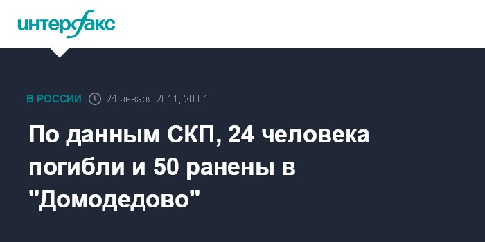 По данным СКП, 24 человека погибли и 50 ранены в "Домодедово"