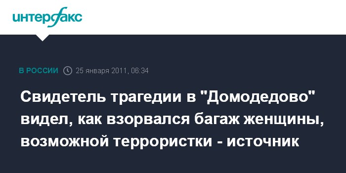 Свидетель трагедии в "Домодедово" видел, как взорвался багаж женщины, возможной террористки - источник