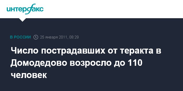 Число пострадавших от теракта в Домодедово возросло до 110 человек