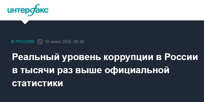 По его словам, "это, прежде всего, свидетельствует о довольно высокой латентности (скрытости) коррупционных преступлений". "По оценкам специалистов, реальные цифры в две тысячи раз превышают показатели официальной статистики", - подчеркнул собеседник агентства.