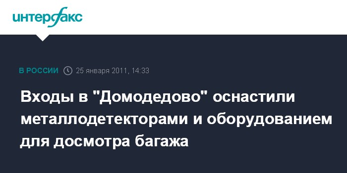 Москва.25 января. INTERFAX.RU - Все входы в аэровокзальный комплекс аэропорта "Домодедово" оснащены средствами безопасности и досмотра, заявила журналистам во вторник пресс-секретарь аэропорта Елена Галанова.