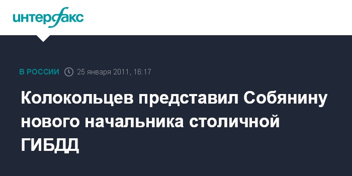 Как передает корреспондент "Интерфакса", во вторник глава столичного ГУВД Владимир Колокольцев представил С.Собянину нового руководителя столичной ГИБДД Александра Ильина.