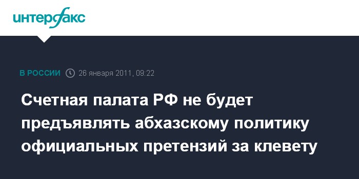 Счетная палата РФ не будет предъявлять абхазскому политику официальных претензий за клевету