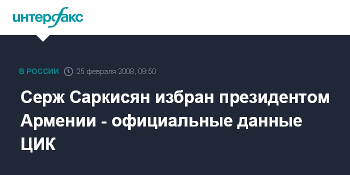 Согласно официальным данным, президентом Армении избран Серж Саркисян.