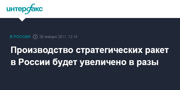 Москва. 27 января. INTERFAX.RU - России в ближайшие годы необходимо радикально увеличить объемы производства межконтинентальных баллистических ракет для сохранения потенциала стратегических ядерных сил, считает генконструктор Московского института теплотехники (МИТ) Юрий Соломонов.