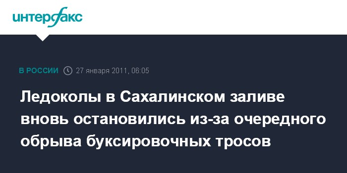 Ледоколы в Сахалинском заливе вновь остановились из-за очередного обрыва буксировочных тросов